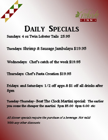 We recently saw the Inn's ad on dealsinberks.com and decided to stop and try. We had a party of 6 and were greeted promptly and sat! The atmosphere is great and cozy; the food is very tasty and reasonable. We will be back!